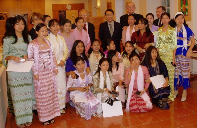 La remise des diplômes aux infirmières birmanes (2006) -- L’Ambassadeur de Birmanie au milieu des récipiendaires
