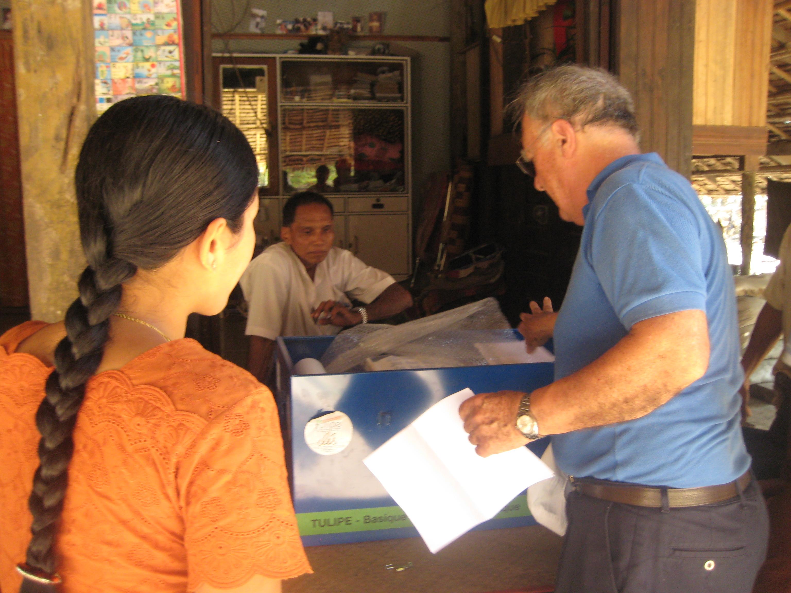 A Tandwe, en accord avec le Médical Superintendant on fera une salle de consultation au sein de l’hôpital dédié aux patients nécessiteux et on rénoverait les consultations normales. Par ailleurs, de l’autre coté de la Baie de Nagpali, l’AMFA créera un dispensaire à Shwe Hlay, village où sera affectée une « midwife » du gouvernement et deux structures plus petites dans des villages pauvres, sur la même cote, à une heure de bateau de la ville. A Myeik, il s’agirait de créer 6 dispensaires qui permettront à l’hôpital de mieux rayonner sur la région (surtout dans les îles) et de doter en matériels les dispensaires existant. En attendant de pouvoir en cas de succès faire tourner environ 20 dispensaires mais il faut trouver des concours financier multiples. En effet, le salaire d'une aide soignante est estimé à 80€/mois. L'album photos permet de situer l’environnement et les conditions de la mission d’évaluation de ce nouveau projet dont la réalisation commence en 2008. En juillet 2008, le dispensaire du village de Maung Shwe fonctionne six jours par semaine avec en alternance l’infirmière du village et l’aide-soignante. C’est l’équipe du dispensaire de Sandoway qui coordonne et achemine les médicaments. La fréquentation moyenne est de 45 malades par jour. ![]() ![]() ![]() A la même date, au village distant de 20km Saw Weh, le bâtiment devant abriter le dispensaire est en voie d’achèvement et l’ouverture est prévue pour la fin septembre 2008… si la mousson ne paralyse pas le chantier. ![]() ![]() ![]() ![]() Le dispensaire de l’hôpital de Tandwe dispense des soins entièrement gratuits 5 jours par semaine à raison de 20 indigents par jour. ![]() ![]() ![]() ![]() A Myeik, le dispensaire de l’île de Pan Sin (dans l’archipel) fonctionne bien avec une infirmière compétente. Il reçoit ses médicaments de l’AMFA par l’intermédiaire de l’hôpital. ![]() ![]() ![]() ![]() Il y a eu beaucoup d’aide dans les dispensaires de la région de Tandwe. Ysabel Salmona est restée dix jours du 15 au 26 novembre 2008 et a consulté aussi bien dans le dispensaire de Sandoway que dans les deux nouveaux dispensaires excentrés. Elle a pu en même temps former les infirmières et aides soignantes. Une médecin bénévole allemande, le Dr Ursula Scheben –Wilkelhog présentée par les Heller a fait de très nombreuses consultations dans les différents dispensaires jusqu’au 15 décembre, sa connaissance des pays en voie de développement s’étant révélée très pertinente. Mission dans l’archipel de Myeik Le 3 et le 4 février 2009, Alain Patel a mené dans les îles de Myeik une mission aux objectifs multiples. Album photos sur les dispensaires des îles à Myeik (janvier 2009) Contrôler le fonctionnement des dispensaires créés en 2008. Décidée fin 2007 et réalisée depuis février 2008, l’extension du dispensaire de Pannzin est une réussite : l’infirmière y reçoit 7à 8 malades par jour. Il comprend une salle d’attente, une salle de soins nouvelle, qui ont été ajoutées au dispensaire ancien qui est également le domicile de l’infirmière. Tout est très propre, le matériel est bien entretenu. Cependant les accouchements sont toujours rares, car il semble que les conditions de discrétion ne soient pas les meilleures. Le chef du village présente alors à Alain Patel un autre terrain qui appartient au village, et sur lequel on décide de construire un nouveau bâtiment qui regroupera tous les services. Cette erreur de départ sera prise en compte dans les prochains choix d’installation. Inaugurer la nouvelle construction de Thazin. Ce dispensaire est situé sur la place du village, mais suffisamment éloigné des maisons. Il est construit en dur, blanc avec une balustrade verte dans le goût birman. Le chef du village, ses collaborateurs, quelques autorités locales président aux cérémonies : fanfare, discours et lâcher de ballons. Mais surtout, dès la première minute de mise en service, la foule se presse à la consultation donnée par les professeurs Myo Myint et Kwaw Myint Naing. L’infirmière a réuni autour d’elle pour la circonstance une dizaine de volontaires. Il faudra deux heures pour résorber le flux des visiteurs. Le dispensaire de Thazin est le modèle de tous les dispensaires qui seront désormais développés. Simple, de construction rectangulaire, il comprend une salle d’attente/salle de formation, une salle de soins équipée de matériels et d’une pharmacie, une salle d’accouchements, des toilettes, et une douche ; des fenêtres pour la lumière et la ventilation, un sol en béton lissé pour la propreté. C’est sur ce même plan qu’on construit actuellement le dispensaire de Chaw Taw Maw. Celui-ci s’élève sur la place du village, au carrefour de la rue qui monte du débarcadère et de la rue centrale, passage obligé devant la pagode. Les murs de brique sont montés. Alain Patel y fait quelques remarques sur la hauteur des fenêtres et fait rajouter un drainage périmétrique. Le toit sera posé dans 15 jours, et le chef du village promet une mise en service pour mi-mars. Il ne se sera passé que trois mois entre la décision d’Alain Patel et la fin de la construction. Le coût ne dépassera pas 8000 $. Prospecter des nouveaux villages pour étudier les besoins et la faisabilité d’un dispensaire. C’est ainsi que l’équipe visite les villages de Ye Kan Aw et de The Chaung. A chaque fois le chef du village montre un terrain appartenant au village, vaste et praticable, et propose de mettre à disposition de la main d’œuvre pour la construction, et sa collaboration totale au projet. C’est le but de l’Amfa : offrir tous les moyens de construction, d’équipements et de formation pour qu’à terme le dispensaire soit considéré par le village comme son bien propre, ainsi que celui du Ministère de la Santé. Emmener des médecins birmans en miss