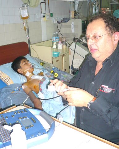 Le 22 mars 2006 la Fondation Rainbow Bridge (Président Franck Dargent) a décidé de prendre en charge la totalité de la rénovation et de l'équipement de l'Hôpital des Enfants et des Mères de Myeik, et de participer à l'ouverture de l'hôpital (attention, sur la carte de Birmanie présentée sur ce site Myeik apparaît sous son ancien nom de Mergui). Il s'agit de recréer cet hôpital dans l'ancien hôpital de la ville, qui date de l'époque coloniale : C'est un beau bâtiment dont la centaine de lits seront consacrés à la mère et à l'enfant (pédiatrie, gynécologie obstétrique) La photo qui suit prise en février 2006 montre le style de la construction. ![]() Le don de la Fondation Rainbow bridge se monte à 210.000 euros. C'est l'utilisation de ce financement très important à l'échelle de la ville de Myeik que vous suivrez dans cette page, jusqu'à la fin de l'année 2006, date à laquelle les premières mères et les premiers enfants seront accueillis. Pour prendre date, voici d'où nous partons et la photographie de la maternité actuelle (février 2006) ![]() La collecte des matériels en France, leur remise en état et la vérification de leur fonctionnement sont des opérations très lourdes. ![]() ![]() Les médicaments nécessaires au fonctionnement de l'hôpital de Myeik sont des dons de Tulipe, l'association des professionnels du médicament. Les gants chirurgicaux et les champs opératoires viennent de LE BIP qui nous a donné de quoi fonctionner pendant au moins un an. Des l'arrivée du containeur a Yangon les Birmans vont organiser le transfert vers Myeik par la voie la plus sure. Les mobiliers de salle d'opération et de réanimation et les équipements pour les salles d'accouchement ont été achetés à Yangon et le transport va être vraisemblablement organisé par voie maritime car la saison des pluies a commencé et les routes seront difficilement praticables. Les travaux de rénovation ont commencé le 10 mai avec un calendrier par tranches de façon à permettre une continuité des soins. Là encore un certain nombre de matériaux de construction doivent être envoyés depuis Yangon mais l'objectif reste une inauguration des travaux le 28 octobre 2006. Le containeur de 40 pieds (instruments chirurgicaux et blocs) a été chargé le 25 juillet pour arriver le 8 septembre. ![]() Rappelons que l'hôpital général a 300 lits ; C'est un hôpital régional comprenant toutes les disciplines mais il n'y a pas beaucoup d'infirmières et surtout il n'y a pas assez de courant électrique : Nous allons installer un gros groupe électrogène et essayer de fournir du gazoil pour aider au fonctionnement de l'hôpital. Les deux gros groupes électrogènes ont été achetés grâce a un don du Dr. Noelle MEYER. Des techniques nouvelles vont être introduites, ce qui réduira les temps de séjour et permettra d'augmenter le nombre de malades ayant accès aux soins. ![]() Grâce à la Fondation Rainbow Bridge, l'ancien hôpital va devenir l'hôpital " mère et enfants " sauf pour la chirurgie qui se fera à l'hopital général. La gynécologie chirurgicale seule se fera à l'hôpital mère et enfants où les problèmes d'adduction d'eau et d'alimentation électrique sont en voie de résolution. Nous nous efforçons ainsi de mettre à niveau les conditions d'hygiène et de qualité des soins dans cette la ville de Myeik, premier port de pêche de la Birmanie et région de 400 000 habitants (où les envoyés du roi louis XIV abordaient pour aller au Royaume de Siam !). Début octobre 2006 a été prise la décision de refaire la route d'accès à l'Hôpital Mère et Enfants, ce qui était un pari un peu fou en raison des conditions météo. Elles ont été contre nous mais les ouvriers birmans ont fait des prouesses : La nouvelle route, superbe, avec des drainages efficaces était prête le 28 octobre. Durant tout le mois d'octobre près de 80 ouvriers avec un ingénieur ont travaillés, parfois même de nuit, car la mousson a duré jusqu'au 14 octobre avec des grosses pluies (rien ne séchait). Les techniciens français, tous de l'Assistance Publique de Paris, venus pour la plus part sur leur vacances, ont dès leur arrivée revus tous les éclairages opératoires, les circuits de fluides médicaux et mis en service tous les appareils médicaux respirateurs, bistouris électriques etc. Dans la semaine qui a précédé l'inauguration, 6 salles d'opération avaient trouvé leur équipement complet en parfait état de fonctionnement. L'Hôpital de la Mère et de l'Enfant compte désormais avec une salle de travail, une salle d'accouchement, une salle de néonatologie avec deux couveuses, une salle de radiologie et deux salles d'opération. Bien entendu le circuit d'eau prioritaire fonctionne, chaque poste d'infirmière a dorénavant l'eau 24/24 comme les salles d'opération et d'accouchement et une salle de récession des urgences nouvellement créée. ![]() ![]() Le gouverneur de la province, le ministre de la santé, le directeur général de la santé étaient présents, qui ont ensuite effectué une visite complète de l'hôpital. Le 29 octobre, comme des cas de chirurgie orthopédique étaient trop complexes pour une opération à Myeik, nous avons convoyé, dans l'avion qui nous ramenait, deux enfants, une adolescente et un adulte pour être opérés a l'hôpital d'orthopédie de Yangon. Les frais de transport et de séjour étaient pris en charge par la Fondation Rainbow Bridge, inaugurant ainsi une procédure qui servira une vingtaine de cas par an. Quelques photographies qui vous ferons toucher des yeux les conditions de notre action à Myeik et la somme de dévouements qui la rende possible. Ces autres photos (ici, les Dr Isabelle Mercier-Bellay et Jacques Lehouelleur) montrent nos missionaires à l'oeuvre. En ce début d’année 2007, Avenir Finance et la Croix Rouge française viennent de s'associer au projet afin que l’alimentation continue (24H/24) en eau